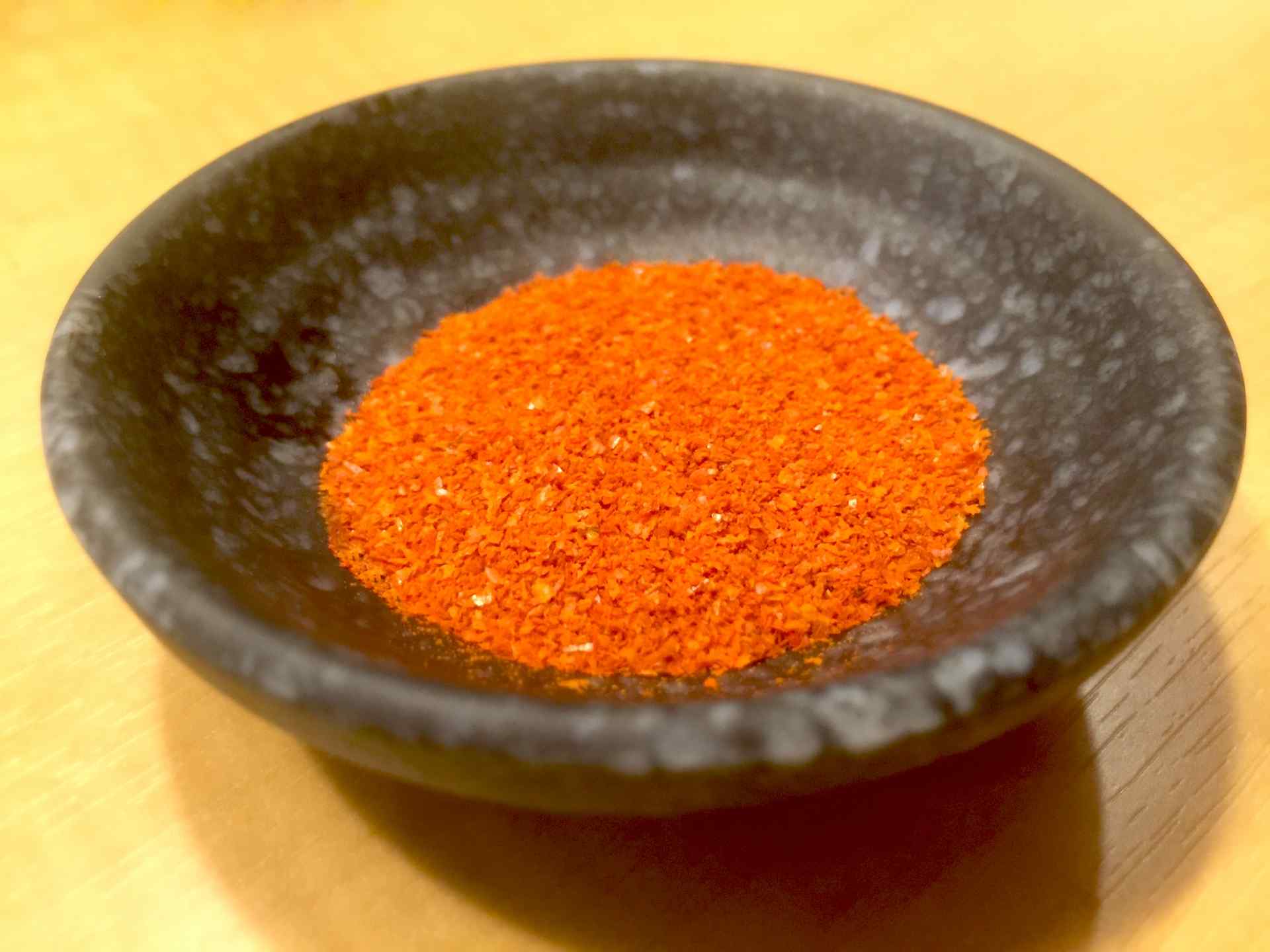 ぽんさんの一言: 一味は油分の多い料理と相性抜群。脂のこってり感を辛さでカットしてくれるので、最後まで美味しく食べられます。