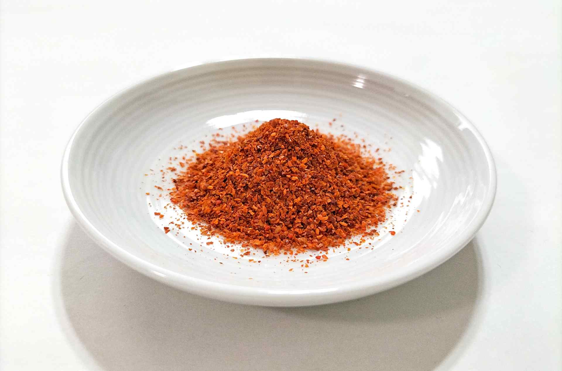 製造方法はシンプルで、乾燥させた唐辛子を細かく粉砕するだけ。ただし、この粉砕の細かさによって、辛さの感じ方が変わってきます。細かく挽いたものほど、舌に触れる表面積が大きくなるため、より強い辛さを感じやすくなります。